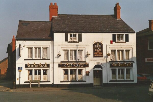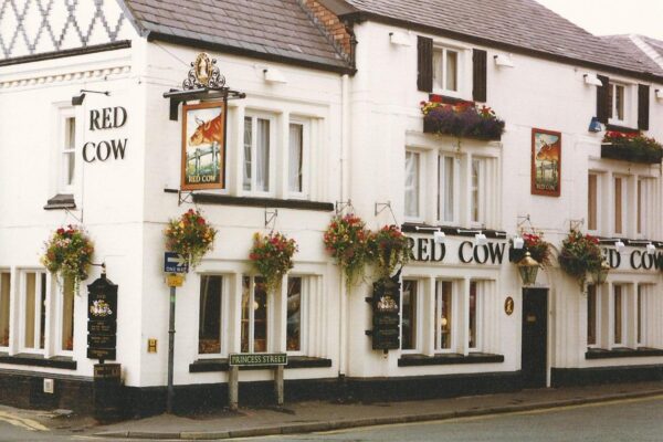 Known today as the Old Sessions public house, it was formerly known as The Red Cow. This view looks out onto Canute Square with Heritage Way at the left-hand side, c. 1992. KHC. MAB. Canute Square. 999(2). ND.